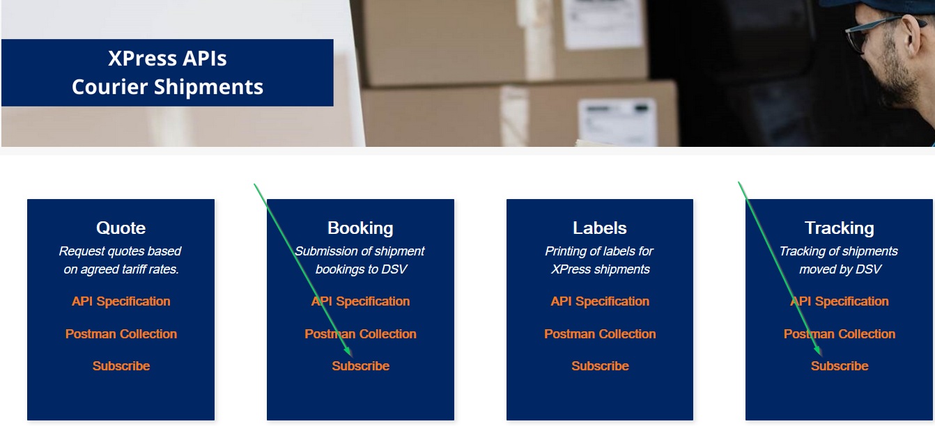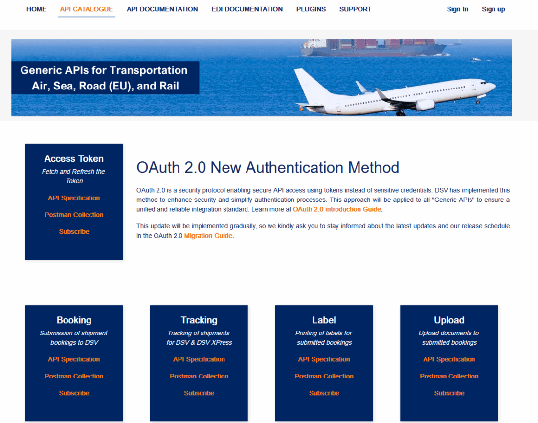 - Die Website https://developer.dsv.com/apicatalogue aufrufen: