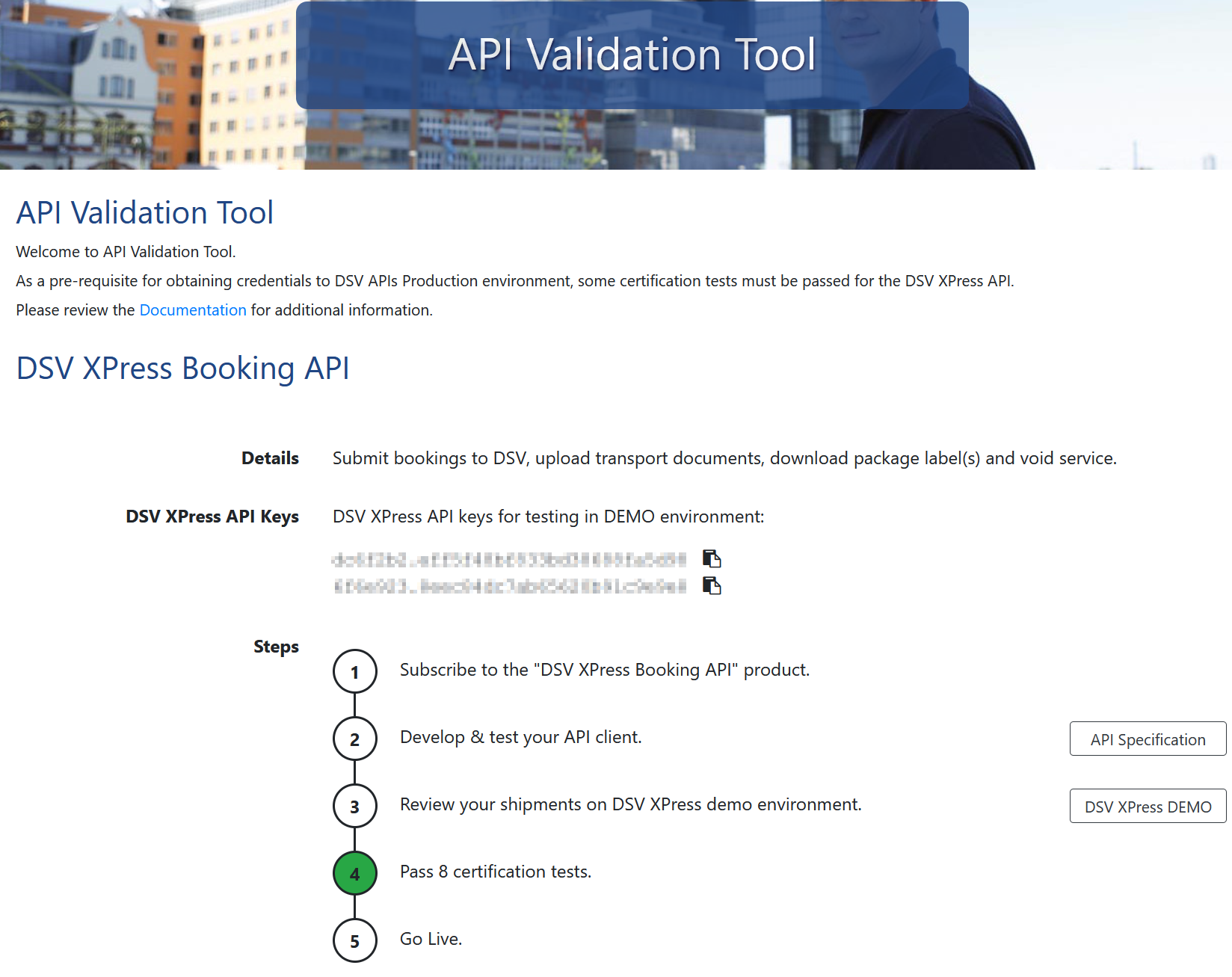 - Sie erhalten von DSV Xpress Zugang zu der Seite demo.xpress.dsv.com (s.u.)