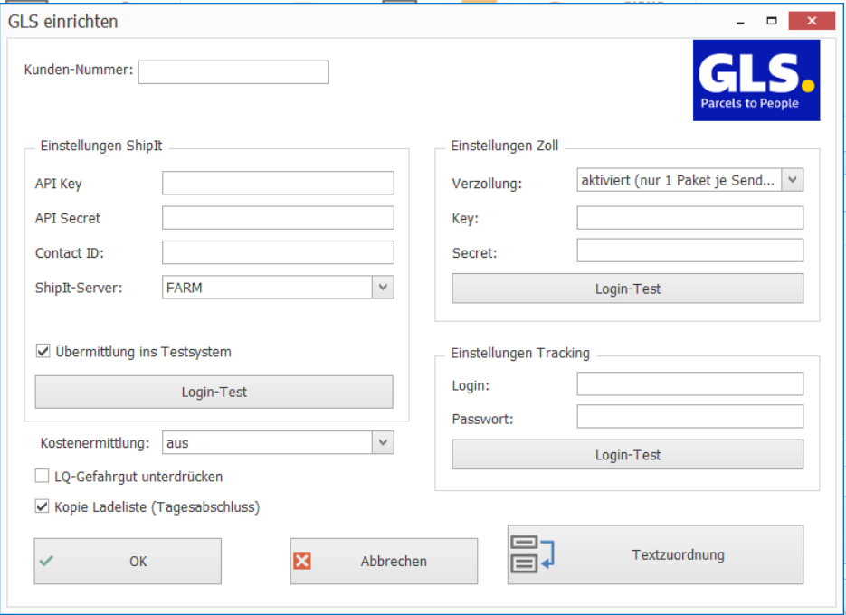 Um bei GLS Zollinformationen zu übermitteln, werden Zugangsdaten für einen separaten Webservice benötigt.