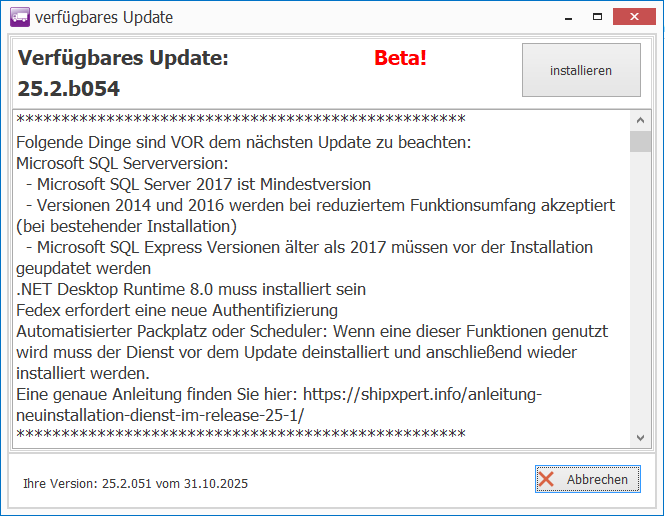 Ist der ShipXpert-Service installiert, muss dieser ebenfalls unter