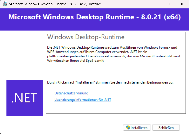- Nach einem Klick auf „installieren“ wird das Programm heruntergeladen.